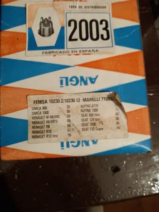 Tapa de distribuidor FEMSA 10230-2 / 10230-12, compatible con modelos Marelli 71063. - Fabricado en España. - Compatible con Simca 900, 1000. - Compatible con Renault 4F-R4-R4S, R6-R8TS, R8, R10, R12 (tm). - Compatible con Seat 850 (tm), 124 (tm), 1430, 133 Super. - Referencia: 2003.