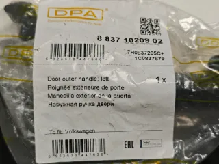 Kit de manecillas exteriores DPA para puertas de Volkswagen Caddy con doble puerta lateral del año 2004. - Número de pieza: 8 837 18210 02 y 8 837 18209 02. - Compatible con modelos Volkswagen Caddy 2004. - Incluye 4 manecillas.