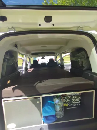 Mueble a medida para convertir tu Citroen Berlingo en una camper. - Estructura de madera. - Incluye colchón. - Ideal para viajes y escapadas.