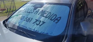 Parasol para parabrisas de coche, de color plateado, en perfecto estado. - Medidas: 140x70 cm aproximadamente. - Diseño plegable para fácil almacenamiento. - Material reflectante para proteger del sol.