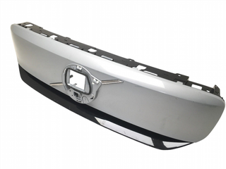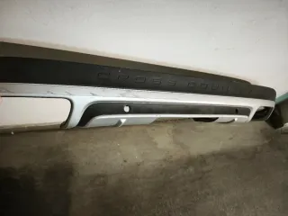 Moldura inferior para el parachoques trasero de un Volvo V60 Cross Country. Ref: 31455448 - Diseño específico para el modelo V60 CC. - Color plateado con detalle en negro. - Recortado para bola de remolque. Se nota el roce en las zonas plateadas pero no afecta ni a su funcionamiento ni está roto