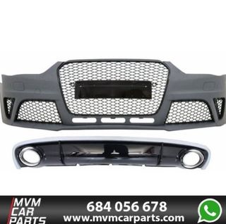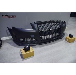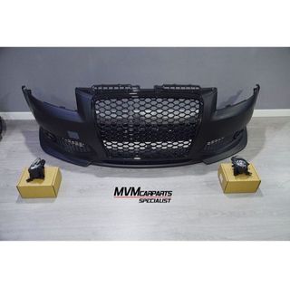 Paragolpes delantero para Audi A3 8P de 2005 a 2008 tipo RS3 No válido para modelo 2004 con parrilla partida ( En esta versión es necesario montar el capot de 2005 en adelante para que el paragolpes pueda encajar ) Incluye faros antinieblas, parrilla y rejillas de antinieblas Fabricado en ABS de alta calidad.