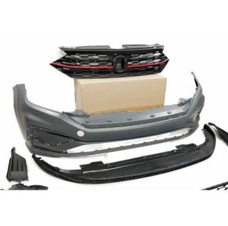 REF: PA000189 Kit de paragolpes delantero look GTI para Volkswagen Golf VII, 2012-2017. Para vehículos con PDC. Incluye accesorios, luces de niebla y parrilla frontal sin logo. Paragolpes fabricado en inyección de plático polipropileno (PP). Montaje directamente sobre los anclajes de serie del vehículo. Ajustar el paragolpes antes de preparar y pintar. PARAGOLPES DELANTERO LOOK GTI PARA VW GOLF VII, 12-17, para PDC, Nieblas+Parrilla.