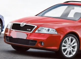 Paragolpes delantero para Skoda Octavia II vRS 1z En color rojo, en buen estado aunque con algunas rascadas Tan solo me falta la tapa del lavafaros derecho como se puede observar en la foto. Incluye los sensores de aparcamiento y los lavafaros