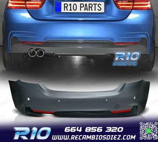 Móvil: 664 856 320 - Referencia: CRC010008. PARAGOLPES TRASERO BMW F32 F33 LOOK M PDC Válido para: BMW Serie 4 F32 F33 (2013-) Especificaciones: Modelo: Look M Material: Plástico ABS PDC (Agujero para sensores de aparcamiento): Si Incluye: Difusor con salida en el lado izquierdo (--OO------) Paragolpes listo para pintar Montaje. Instalación sencilla, directamente en los anclajes originales del vehículo. ABS. Fabricado en plástico de alta calidad para asegurar resistencia y larga durabilidad. Imagen. Rejuvenece la apariencia del vehículo con este paragolpes deportivo. Estos no son p