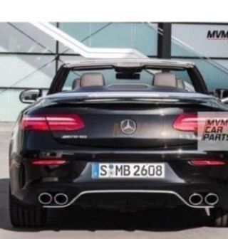Difusor trasero con salidas de escape cromadas para Mercedes Clase E C238 Coupe y Cabrio de 2016 en adelante Diseño look E53 AMG silver edition Sólo válido para vehículos con paragolpes trasero AMG Fabricado en ABS de alta calidad con salidas de escape en acero.