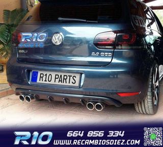 Paragolpes trasero para Volkswagen Golf 6 VI tipo R20 Incluye catadióptricos y difusor trasero de doble salida central Fabricado en Abs.