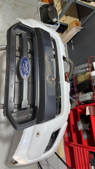 Paragolpes delantero para Ford Ranger modelo 2018. - Color blanco. - Incluye parrilla frontal con logo Ford. - Incluye faros antiniebla. - Diseñado para el modelo Ranger 2018. Esta en buen estado. Se lo he quitado para ponerle uno de acero (preparación off road). Tengo mas piezas (paragolpes, cabestrante, soporte cabestrante, ballestas, caja, luces traseras, llantas...). Echa un vistazo en mi perfil. A recoger. Quiza pueda llevarlo a Madrid previo pago
