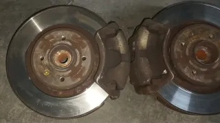 Conjunto de frenada para grupo VAG con discos de 280mm de diámetro y pinzas Lucas 54. Los discos tienen rebaba y se deberán cambiar en el próximo cambio de pastillas pero se pueden montar así, no vibraban ni nada parecido. Válidos para Seat Ibiza, Córdoba, Arosa, Toledo 1L, Golf II, Jetta..... El envío se haría en dos paquetes, pondría otro anuncio separando las manguetas para poder enviarlas.