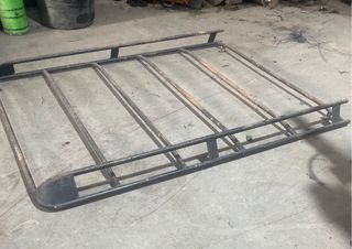 Baca portaequipajes de metal, diseñada para Citroën C15. Ideal para transportar equipaje adicional. - Estructura robusta de tubos metálicos. - Diseño de rejilla con barras transversales. - Acabado en color negro con detalles de óxido.