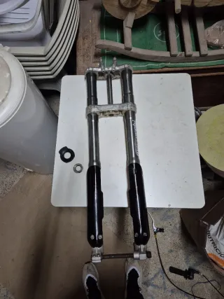 Horquilla delantera Marzocchi para Derbi DRD Pro. Pieza de despiece. Escucho ofertas - Modelo: Marzocchi. - Compatibilidad: Derbi DRD Pro. -Adaptable a muchas motos -Incluye cubre horquillas, eje y las tuercas de las tijas Derbi yamaha beta sherco rieju Hispania