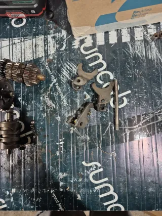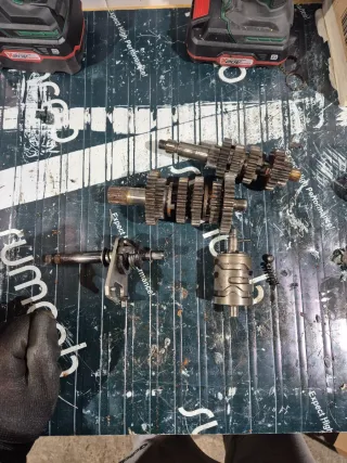 Conjunto de engranajes y componentes de caja de cambios para motor AM6. - Incluye ejes y piñones. - Piezas metálicas. - Componentes de cambio. Yamaha suzuki honda beta rieju sherco derbi Hispania