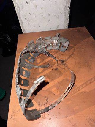 Protector de escape metálico con abrazaderas. - Fabricado en metal. - Incluye abrazaderas para sujeción. Universal válido para todas las motos...125,200,250,300,350,400,450,500,Husqvarna,ktm,sherco,honda,yamaha....