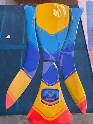 Set de adhesivos para el morro de un kart fa alonso kart Karting Nuevo - Diseño inspirado en Fernando Alonso. - Incluye pegatinas de estilo mini. - Colores azul, amarillo y naranja.