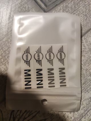 Se venden tres pegatinas para llantas Mini Cooper. Son pegatinas nuevas, sin usar, y vienen en sus respectivos envoltorios. - Pegatinas circulares. - Diseño con el logo "MINI" en color plateado sobre fondo negro. - Ideales para personalizar tus llantas.