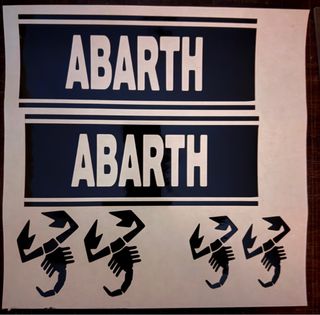 Pegatinas de vinilo Abarth para coche. - 2 vinilos ABARTH 24,5 x 9,5 -2 vinilos escorpion 9 x 6,5 -2 vinilos escorpion pequeño 5,7 x 7,5 -Color a elegir. -Otras medidas a consultar.