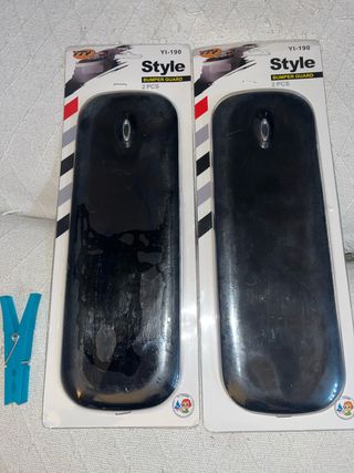 Set de 4 protectores de parachoques para coche, modelo NUEVOS. Los 4 por 10€ Viene dos en cada envase. - Color negro. - Diseño estilo Style. - Incluye 2 unidades. Se pegan con adesivo como una pegatina Evita golpes, arañazos en tu coche o furgoneta