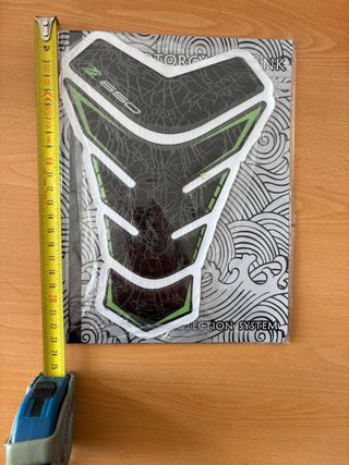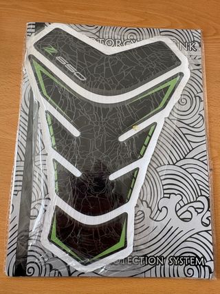 Protector de depósito para Kawasaki Z650. - Diseño en negro y detalles en verde. - Protección para el depósito de la moto.
