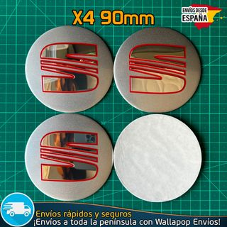 Set de cuatro tapabujes pegatina rígida con el logo de SEAT. Color negro/rojo/plateado. Medida 56mm, completamente nuevos. Se adaptan perfectamente a la tapa de la llanta. Cualquier duda, pregunta sin compromiso.