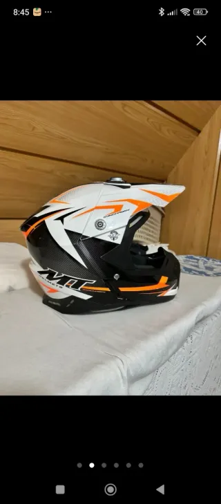 Casco MT Helmets Motocross Naranja Blanco talla l