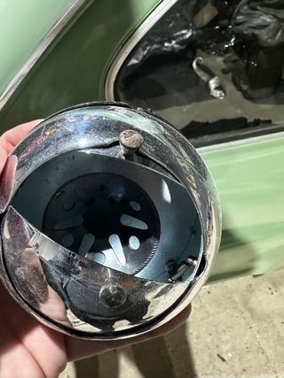 Cenicero de coche con acabado cromado, ideal para vehículos clásicos. - Diseño esférico. - Detalles metálicos.