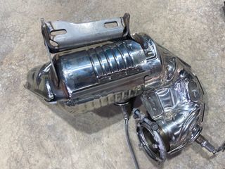 Filtro de partículas - catalizador para Renault. Pieza metálica con soportes y sensores incluidos Renault 208A08135R - Material: Acero inoxidable. - Diseño ondulado en la carcasa exterior. - Conexiones para sensores de oxígeno.