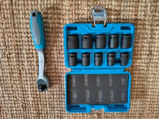 Juego de llaves de vaso de impacto hexagonal BGS 5205. Incluye carraca 1/2". - Carraca de alta calidad. - Vasos de impacto. - Estuche organizador.