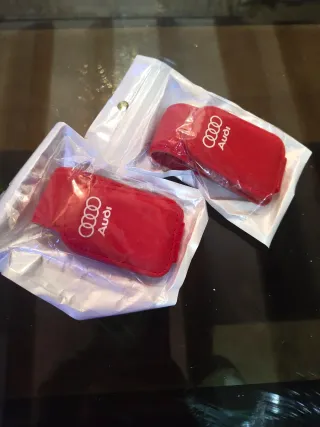 Set de clips de la marca Audi. Para colgar lentes, llaves, etc - Color: Rojo - Marca: Audi - Material: Cuero sintético