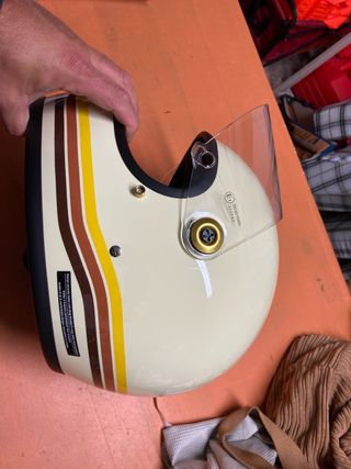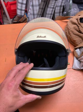 Casco Biltwell Gringo S, nuevo y listo para estrenar. Diseño clásico y seguro. - Color crema. - Visera transparente. - Tiras de ajuste. - Funda Negra Transporte - Libro Instrucciones - Precio original 260€