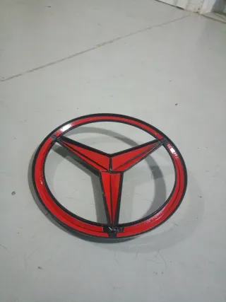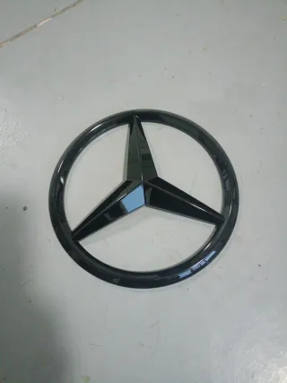 Emblema de la marca Mercedes-Benz con el diseño de estrella. - Color negro brillante. - Diseño tridimensional de estrella. - Borde circular. 18.6cm de diámetro exterior Creo que es para ponerlo encima de la estrella de la rejilla central del paragolpes