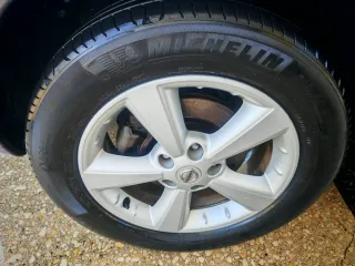 Juego de llantas originales para Nissan Qashqai+2. La más alta de Su gama le falta una tapita Nissan, los neumáticos aún tienen mucha vida los Michelin principalmente. - Diseño de 5 radios. - Acabado plateado. - Incluye tapacubos Nissan.