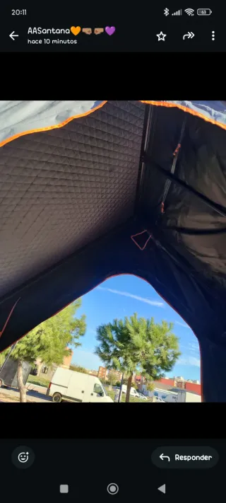 Cómoda y amplia tienda para dormir. Al subirse totalmente en vertical se puede dormir sin problema en cualquier parte. Usa 3 veces, está nueva, sencillo montaje. Se vende por cambio de coche. Se regala pack camping: 2 sillas, hornillo, vajilla para dos ,mesa y ducha portátil.