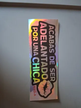 Pegatina de vinilo con diseño llamativo. - Diseño holográfico. - Motivo de labios y texto. - Ideal para personalizar coches o motos. Acabas de ser adelantado por una chica . Al darle la luz cambia de color como se ve en las fotos . 15 cm