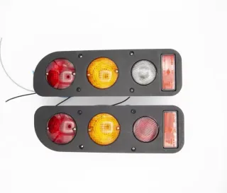 Juego de pilotos traseros para Nissan Terrano 2. - Incluye piloto izquierdo y derecho. - Diseño con luces de freno, posición e intermitente. - Carcasa exterior gris oscuro.