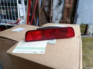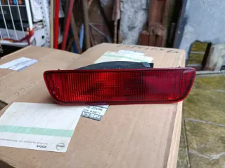 Piloto de niebla trasero para vehículos Nissan. - Color rojo. - Diseño rectangular con superficie texturizada.