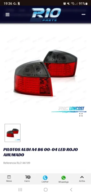 Juego de pilotos traseros para Audi A4. Piezas de repuesto para tu vehículo. - Diseño en color rojo y naranja. - Acabado superior en gris plateado.