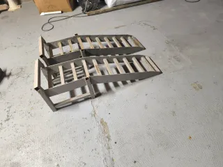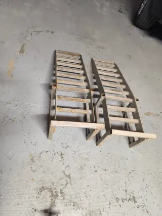 Par de rampas metálicas para coche. Son robustas y están diseñadas para facilitar el acceso. - Material: Metal. - Color: Gris.