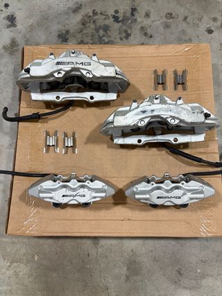 Pinzas de freno AMG de 8 pistones delante y 4 detrás. Son de un E63 AMG w211, se pueden montar en muchos modelos. Están en buen estado. Se incluye juego completo de retenedores.