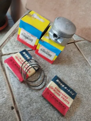 Juego de 2 pistones, con sus correspondientes segmentos, de moto Kawasaki, se desconoce el modelo exacto. Pistón de 6,6 CMS. Con rebaje de una válvula. Medida Standard.