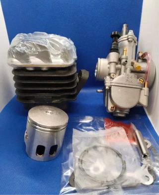 Kit de cilindro para Jog de aire y carburador 21 PWK. - Cilindro de aire. - Carburador 21 PWK. - Incluye pistón y juntas. no leer jog aerox sonic beta rieju aprilia yasuni airsal metrakit blaze voca ktm polini malossi top performance 49cc 70cc 2fast bidalot dellorto despiece no leer jog aerox zip sp derbi rieju am6 am5 vari ador malossi polini stage 6 yasuni preparado blaze 49cc 70cc 80cc aprilia sx preparación krm blaze brk airsal metrakit tnt top performance carburador
