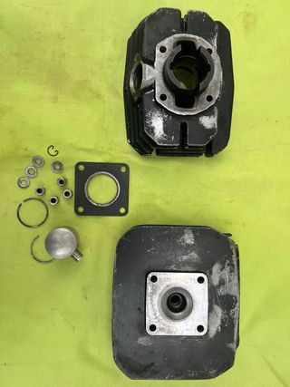 Cilindro Derbi Savanha FDS FDT Coppa. - Cilindro y culata original derbi coppa 49 cc - Incluye 2 clips, canastilla, junta culata,segmentos,pistón,todas sus tuercas y arandelas originales - mínimo desgaste tanto camisa como pistón perfecto estado, máximo rendiemiento para tu bala roja