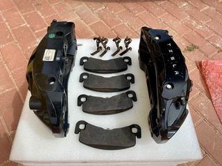 Se venden pinzas Brembo de 4 pistones delanteras de Tesla Model S y Model X Long Range y Plaid a partir del 2021, con sus pastillas y muelles retenedores. Anclaje radial. Precio por unidad. Para discos de 380 mm y 390 mm