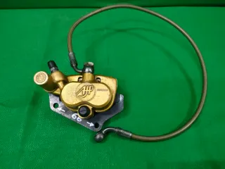 Pinza de freno AJP de doble pistón. Distancia entre taladros 66mm e.c. latiguillo 680mm.+ Info y envios: 650814885.