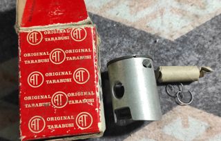 De diámetro 41'5mm, para los cilindros de 65 c.c. de la época. Bulón de 10mm. Totalmente nuevo a estrenar.