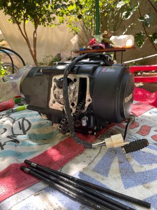 Motor pit bike 125 en perfectas condiciones pison nuevo cadena de distribución nueva embrague y campaña nueva árbol de levas nuevo válvulas y culata he has bien y junta de culata nueva todo con menos de 5 horas de uso siempre se le ha cambiado el aceite de motor cada vez que se usaba se vende con encendido y tapa de encendido tambien qie no salen en las fotos lo vendo por cambio a 150cc.
