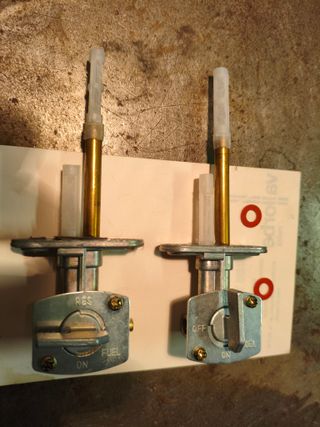 Se venden dos grifos de gasolina para moto tipo pitbike. Incluyen filtros de gasolina, junta para tornillos de fijación, pero les falta la junta más grande. Los dos por 10 euros.