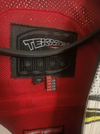 Mono de una pieza de la marca Teknic. - Talla: 58 (Euro). - Fabricado en Vietnam. - Tiene un arrastrón, aunque no tiene ningún agujero. - Para gente grande, sobre 185-195 CMS y 100-110 KGS. - Ideal para circuito o pitbike.