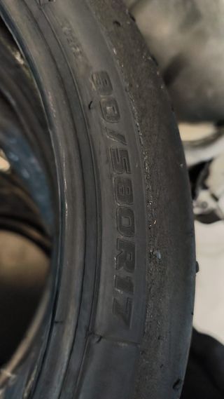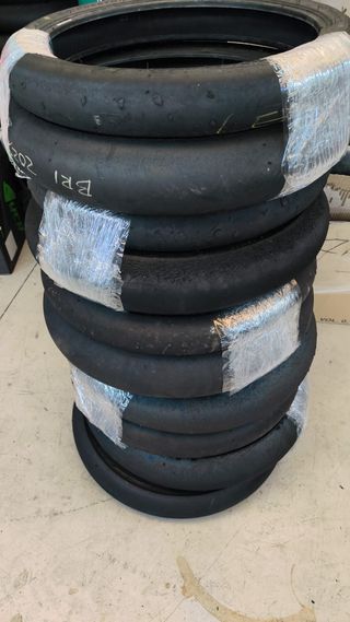 Se venden neumáticos slick Dunlop KR para circuito. Medidas 17 pulgadas (ver fotos). Ideales para pit bike, minimotard o entrenamientos. Estado usado, todavía aprovechables. 💰 Precio: 25€ cada uno