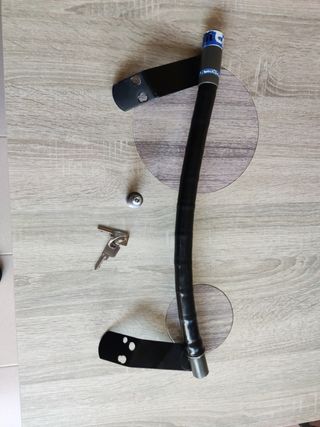 Antirrobo tipo pitón original derbi, supongo que vale para cualquier modelo. Está nuevo y funciona. perfectamente Dos llaves, pitón y anclaje del manillar....a estrenar.