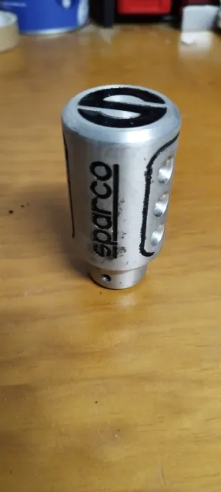 Pomo de la palanca de cambios marca Sparco. Es de aluminio (creo), no tiene uso, me equivoqué de medida al comprarlo. Se incluye las roscas de 3 medidas que se adaptan perfectamente a la barra de la palanca.